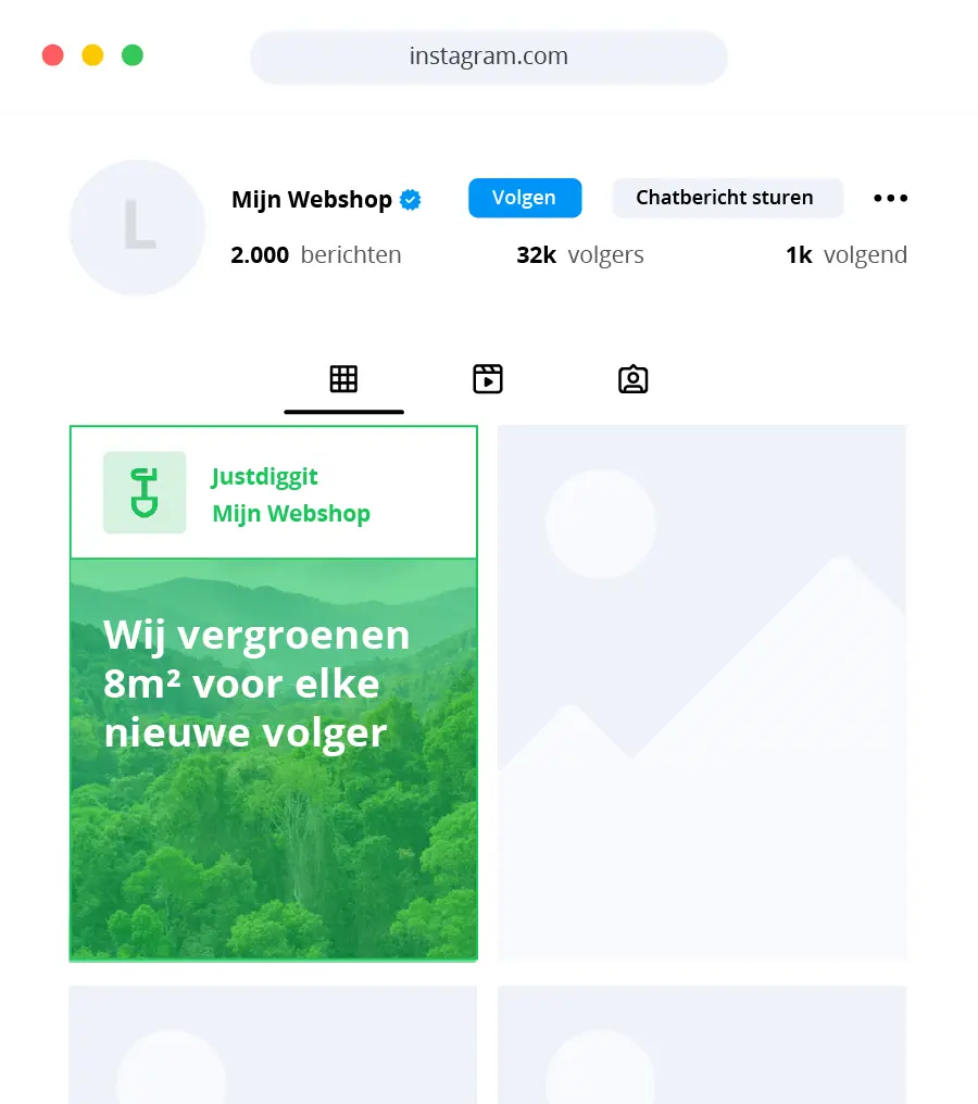 Jij geeft bij je posts aan “Volg ons en wij vergroenen 10m2 via JustDiggit