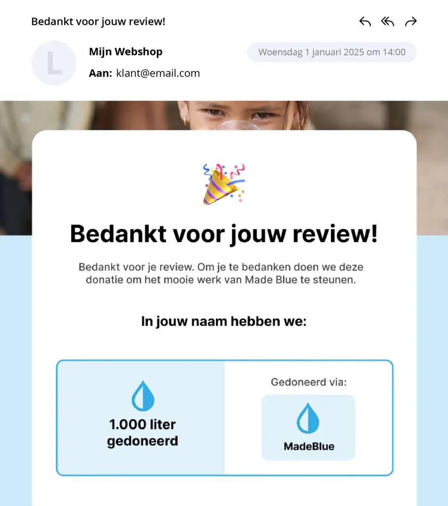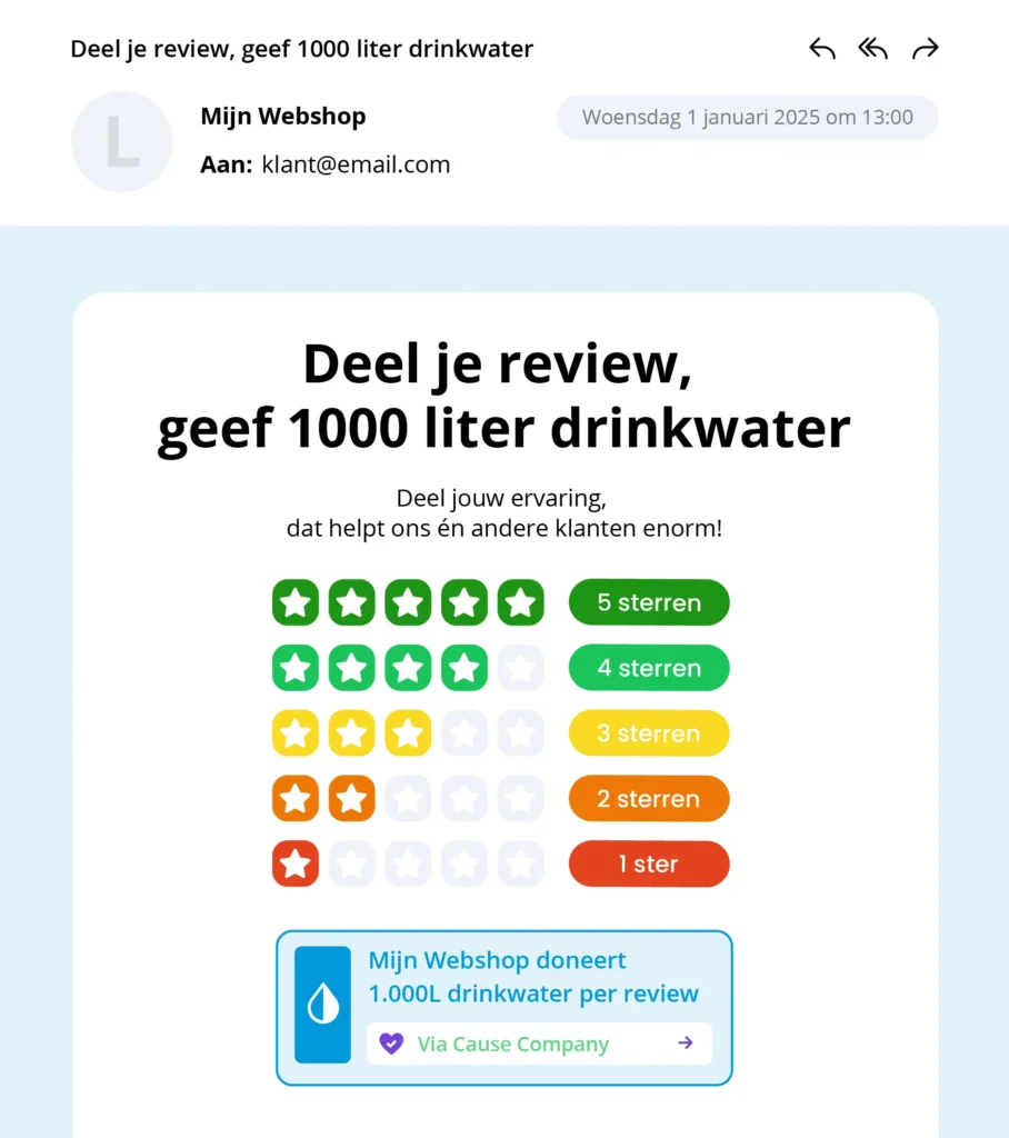 Stimuleer klanten om een review achter te laten door per review een donatie te doen. Zo verzamel je sneller meer reviews en draag je tegelijk bij aan iets moois.